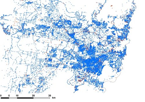 In this instance, 34% of the survey marks in SCIMS (102,437 of 300,328 that returned heights) met the required criteria. For example, Figure 1 illustrates the distribution of these marks across Greater Sydney.