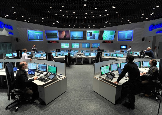 Mission controllers in the European Space Operations Centre, from where the Sentinel missions are controlled. Image courtesy ESA/J.Mai )CC BY-SA 3.0 IGO).