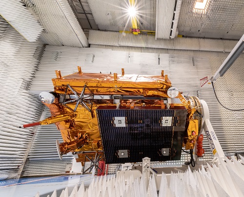 Sentinel-1C undergoes electromagnetic and radio frequency compatibility tests. Credit: Thales Alenia Space.