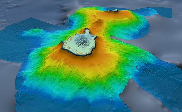 “We also revealed, among the many fascinating features, a smaller peak on the ridge between the north and south islands, rising to approximately 350 metres below sea level.”